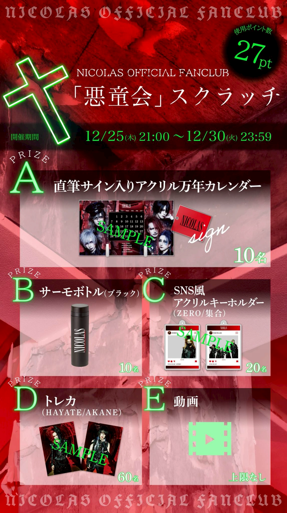NICOLAS OFFICIAL FANCLUB「悪童会」スクラッチ-12月-開催決定